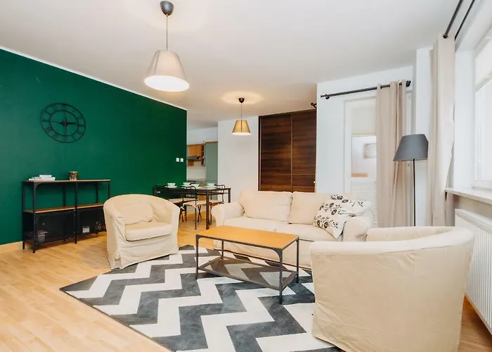This apartment has a fully equipped kitchen and all the necessary items, including an oven and a dishwasher, can be found there. The apartment is within a few blocks of Warszawa Główna train station.